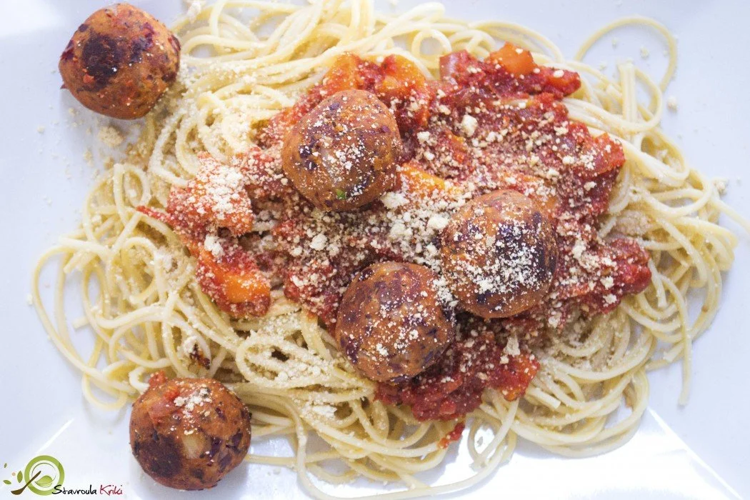Μακαρόνια με Χορτοφαγικά Κεφτεδάκια και Μη Γαλακτοκομικό "Τυρί"